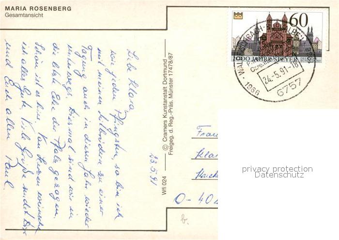 73117092 alte Postkarte Waldfischbach-Burgalben Maria Rosenberg Fliegeraufnahme postalisch gelaufen Erhaltung siehe scans [KathaD81] KatCode: 11110007340054