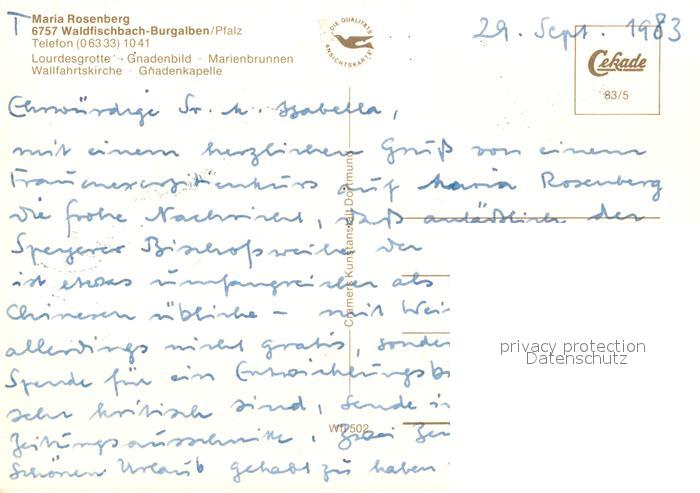 73029951 Waldfischbach-Burgalben Maria Rosenberg Lourdesgrotte Gnadenbild Marienbrunnen postalisch nicht gelaufen Erhaltung siehe scans [KathaD81] KatCode: 11110007340054