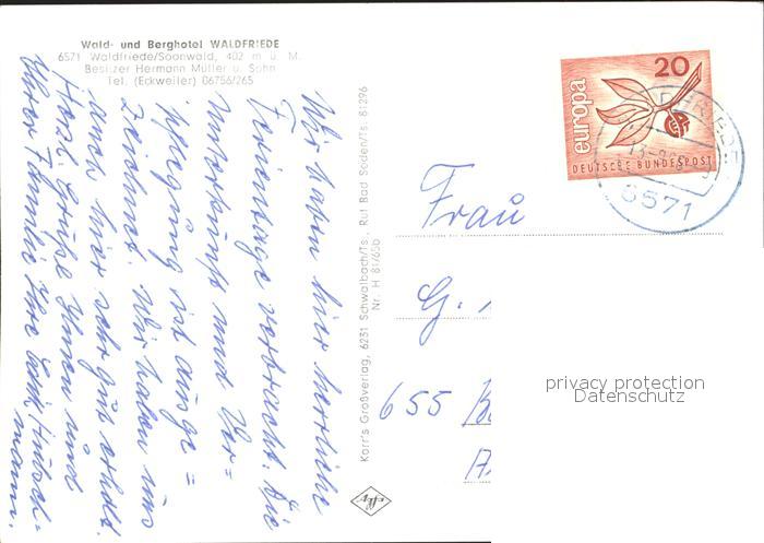 72149609 alte Postkarte Waldfriede Bad Sobernheim Wald und Berghotel Waldfriede Teilansichten postalisch gelaufen KatCode: 11110007133501