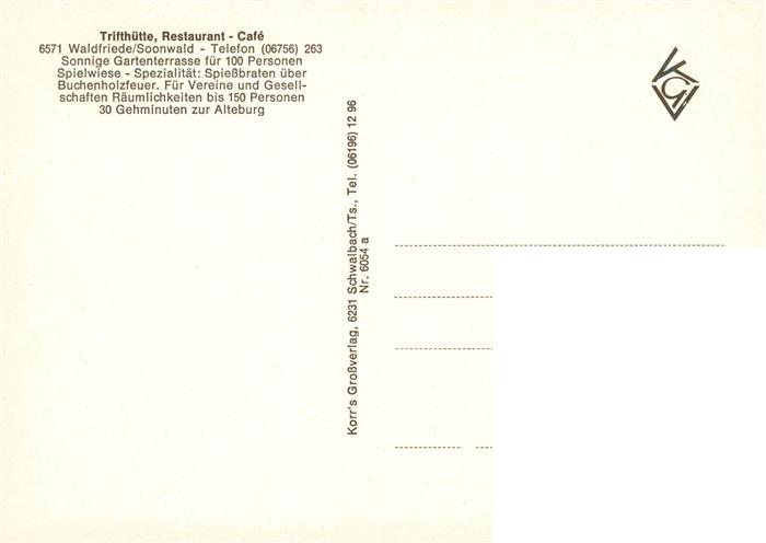 73895484 Waldfriede Soonwald Seesbach Trifthuette Restaurant Cafe Fliegeraufnahme postalisch nicht gelaufen Erhaltung siehe scans [WerneD78] Wern Katcode 11110007133094