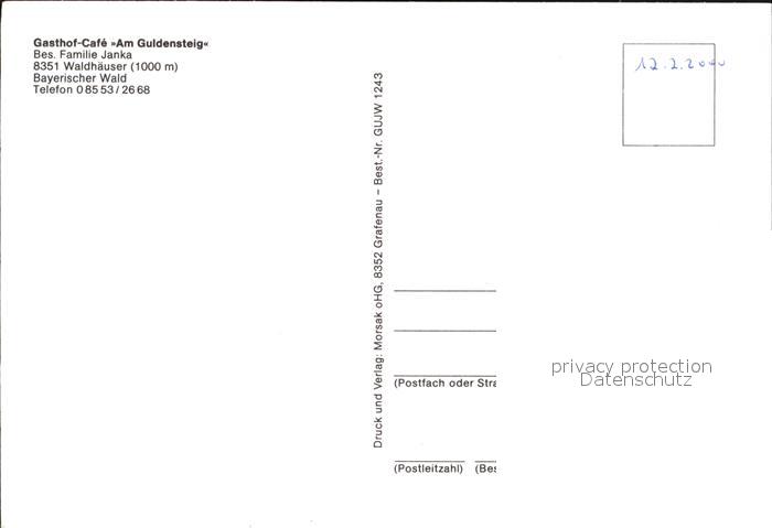 72447861 Waldhaeuser Neuschoenau Gasthof Cafê Am Guldensteig postalisch nicht gelaufen Erhaltung siehe scans KatCode: 11110009272146