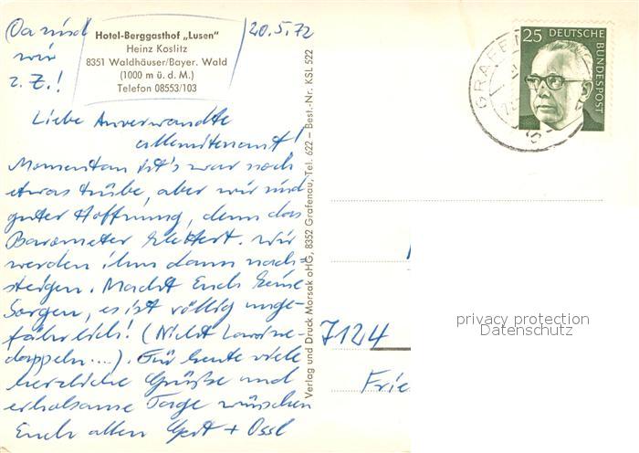73646373 alte Postkarte Waldhaeuser Neuschoenau Hotel Berggasthof Lusen postalisch gelaufen Erhaltung siehe scans [WerneD78] KatCode: 11110009272146
