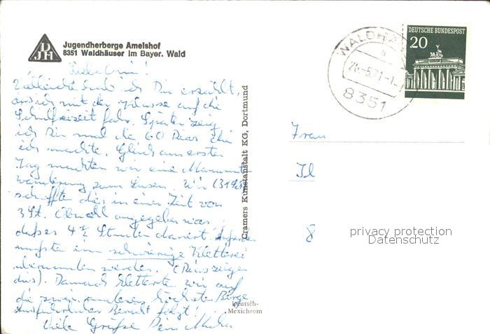 71935423 alte Postkarte Waldhaeuser Neuschoenau Jugendherberge Amelshof postalisch gelaufen Erhaltung siehe scans KatCode: 11110009272146