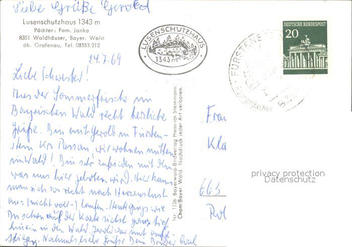 72112637 alte Postkarte Waldhaeuser Neuschoenau Lusenschutzhaus postalisch gelaufen Erhaltung siehe scans KatCode: 11110009272146