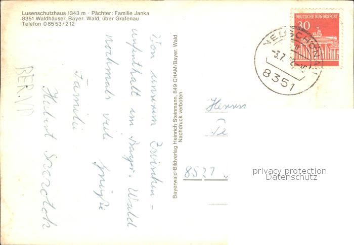 72052595 alte Postkarte Waldhaeuser Neuschoenau Lusenschutzhaus postalisch gelaufen Erhaltung siehe scans KatCode: 11110009272146