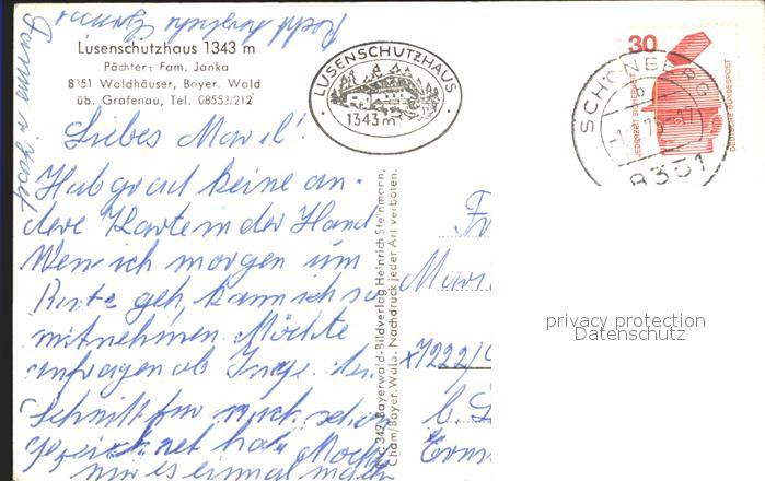 71918735 alte Postkarte Waldhaeuser Neuschoenau Lusenschutzhaus postalisch gelaufen Erhaltung siehe scans KatCode: 11110009272146