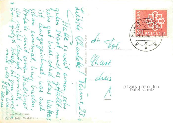 34144852 alte Postkarte Waldhaus Flims GR Parkhotel Waldhaus postalisch gelaufen Erhaltung siehe scans [FriedD77] KatCode: 11470100320120
