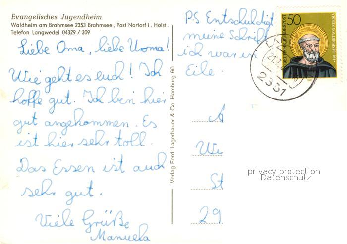 73019148 alte Postkarte Waldheim Brahmsee Ev Jugendheim Details Schwimmbad postalisch gelaufen Erhaltung siehe scans [WerneD78] KatCode: 11110001058094