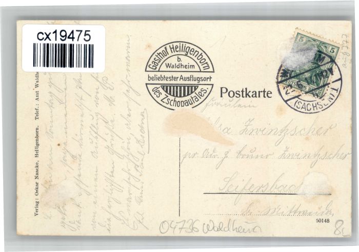 30724741 old postcard Waldheim Gasthof Heiligenborn postalisch gelaufen KatCode: 11410