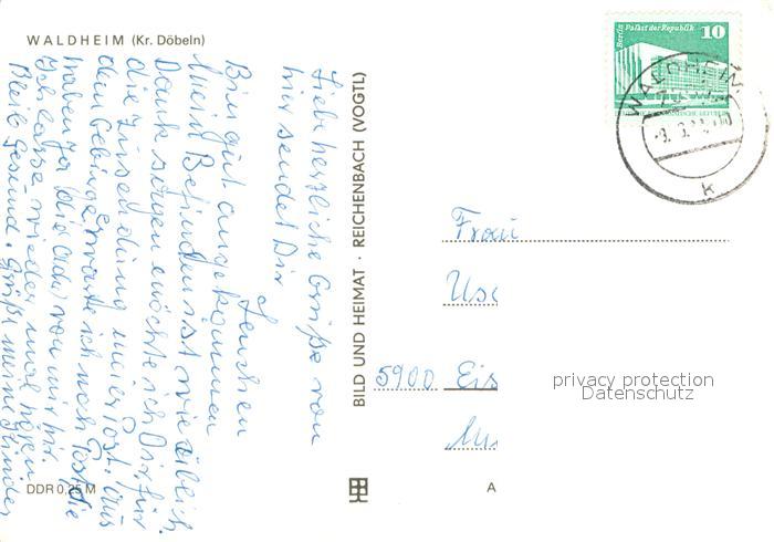 73617900 alte Postkarte Waldheim Sachsen An der Zschopau Blick von der Schillerhoehe Rathausblick Ernst Thaelmann Strasse Rathaus postalisch gelaufen Erhaltung siehe scans [WerneD78] KatCode: 11110014375180