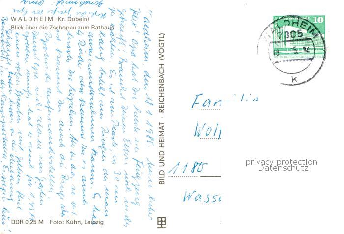 72982780 alte Postkarte Waldheim Sachsen Blick ueber die Zschopau zum Rathaus postalisch gelaufen Erhaltung siehe scans [WerneD78] KatCode: 11110014375180