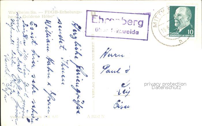 72172165 alte Postkarte Waldheim Sachsen FDGB Erholungsheim postalisch gelaufen Erhaltung siehe scans KatCode: 11110014375180