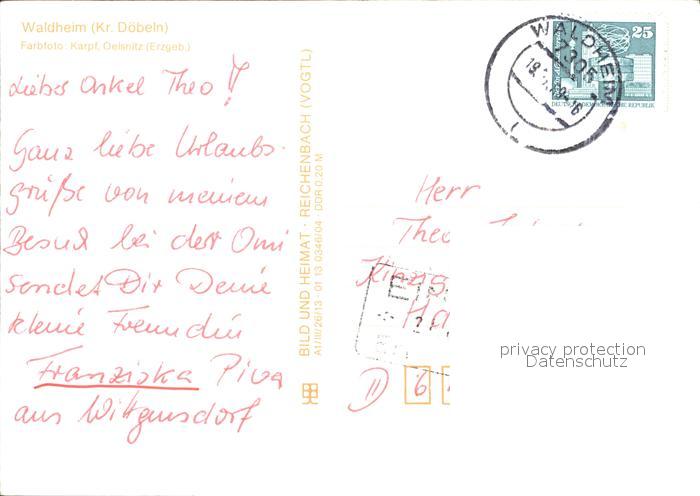 72119290 alte Postkarte Waldheim Sachsen Fliegeraufnahme postalisch gelaufen Erhaltung siehe scans KatCode: 11110014375180