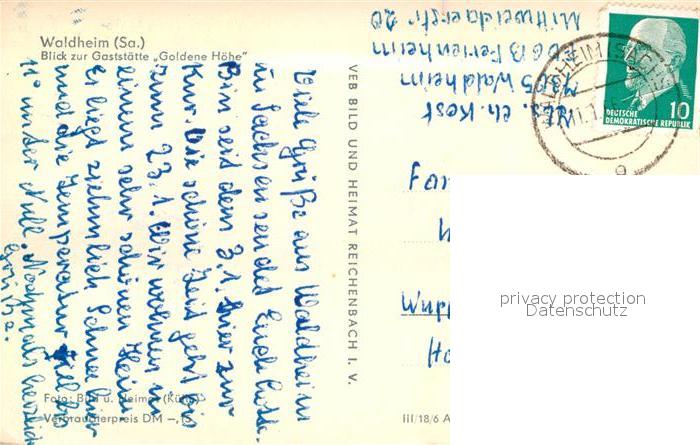72991629 alte Postkarte Waldheim Sachsen Gaststaette Goldene Hoehe postalisch gelaufen Erhaltung siehe scans [AndreD76] KatCode: 11110014375180