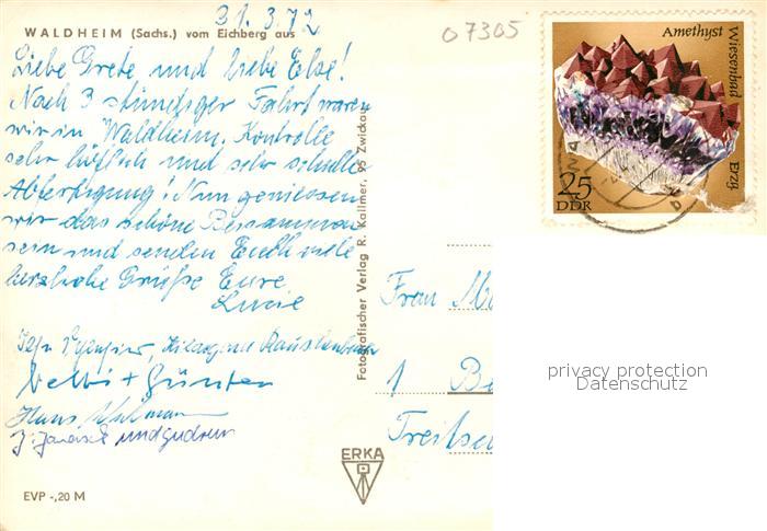 73084122 alte Postkarte Waldheim Sachsen Panorama vom Eichberg postalisch gelaufen Erhaltung siehe scans [KathaD81] KatCode: 11110014375180