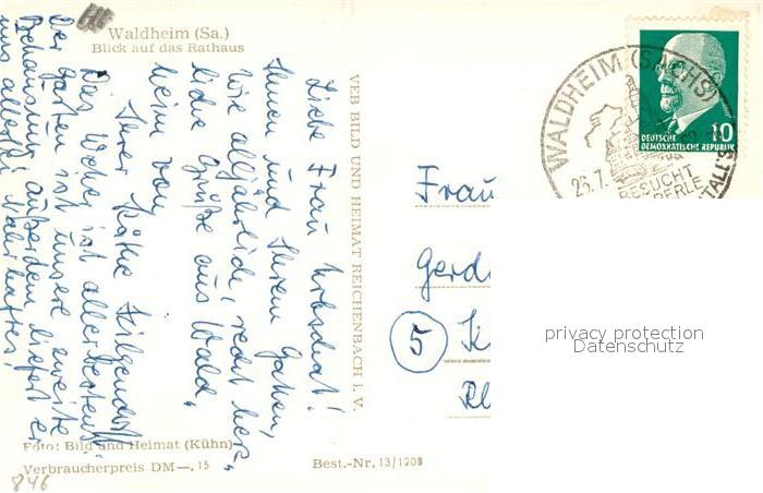 73240371 alte Postkarte Waldheim Sachsen Rathaus postalisch gelaufen Erhaltung siehe scans [KathaD81] KatCode: 11110014375180