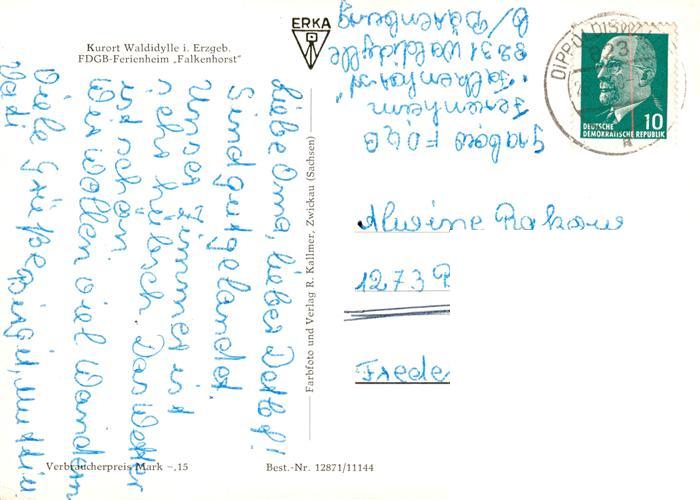 73908325 alte Postkarte Waldidylle Altenberg FDGB Ferienheim Falkenhorst postalisch gelaufen Erhaltung siehe scans [WerneD78] KatCode: 11110014290010