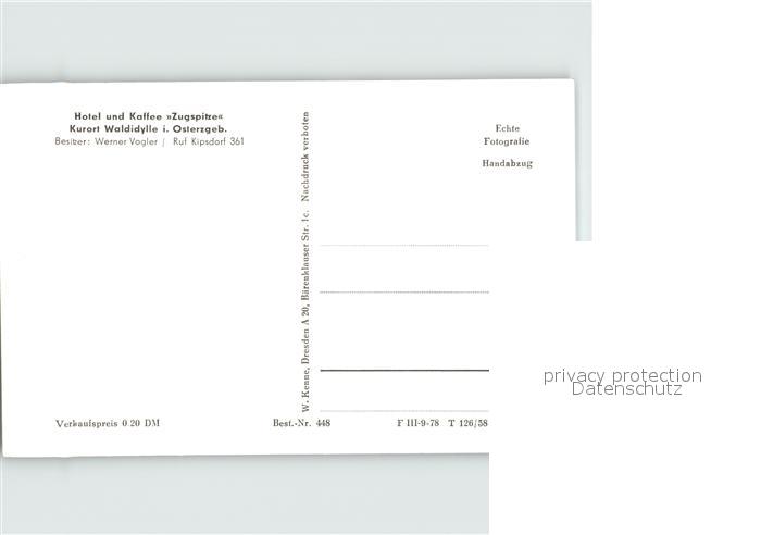 72389971 Waldidylle Hotel und Cafe Zugspitze postalisch nicht gelaufen Erhaltung siehe scans KatCode: 11110014290010