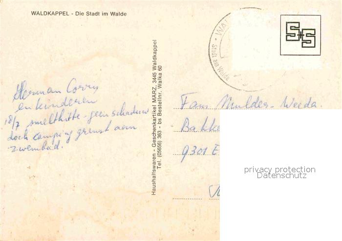 72736960 alte Postkarte Waldkappel Ortsansicht mit Kirche postalisch gelaufen Erhaltung siehe scans [FriedD77] KatCode: 11110006636012