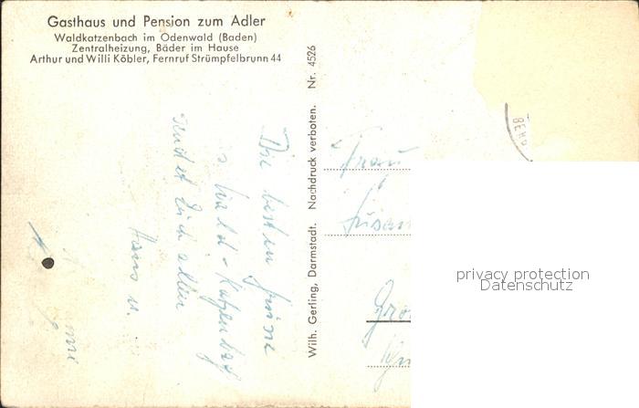 72095297 alte Postkarte Waldkatzenbach postalisch gelaufen Erhaltung siehe scans KatCode: 11110008225118