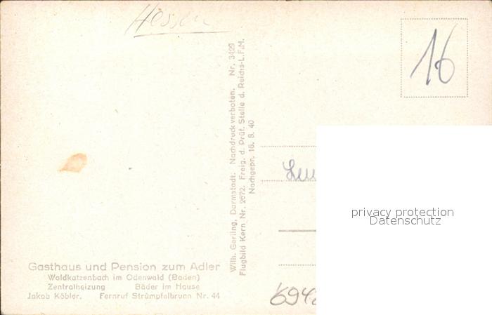 31705701 Waldkatzenbach Fliegeraufnahme postalisch nicht gelaufen Erhaltung siehe scans KatCode: 11110008225118