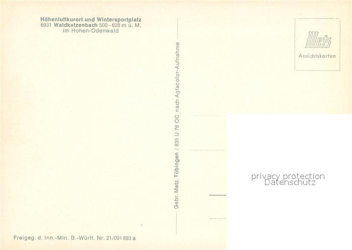 72991276 Waldkatzenbach Fliegeraufnahme postalisch nicht gelaufen Erhaltung siehe scans [WerneD78] KatCode: 11110008225118