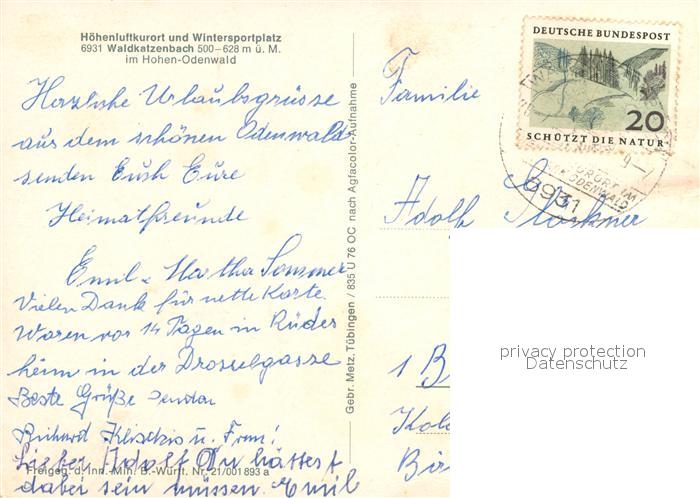 72929745 alte Postkarte Waldkatzenbach Fliegeraufnahme postalisch gelaufen Erhaltung siehe scans [KathaD81] KatCode: 11110008225118