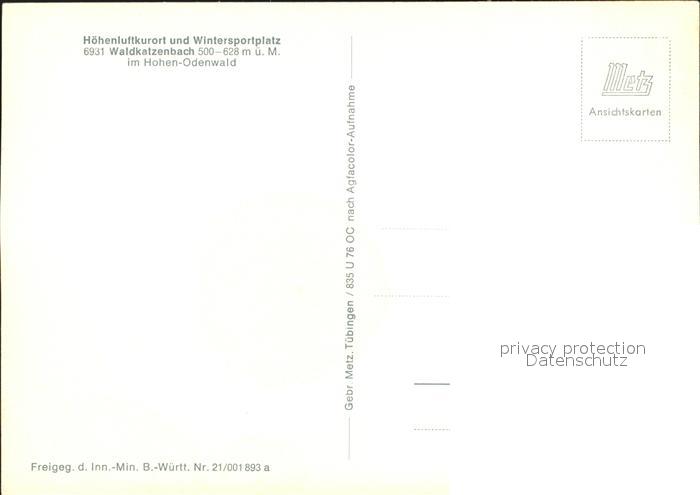 72274801 Waldkatzenbach Fliegeraufnahme postalisch nicht gelaufen Erhaltung siehe scans KatCode: 11110008225118