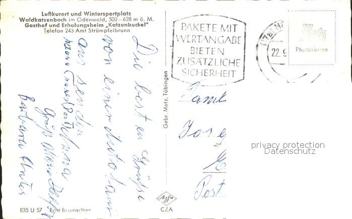 72095797 alte Postkarte Waldkatzenbach Gasthaus Katzenbuckel postalisch gelaufen Erhaltung siehe scans KatCode: 11110008225118