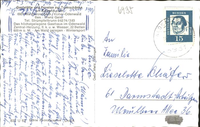 41258126 Waldkatzenbach Gasthaus Pension zur Turmschenke Franz Geier KatCode 11110008225118