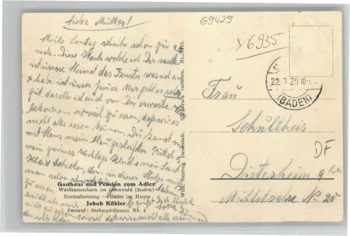 40706347 Waldkatzenbach Gasthaus zum Adler KatCode 11110008225118