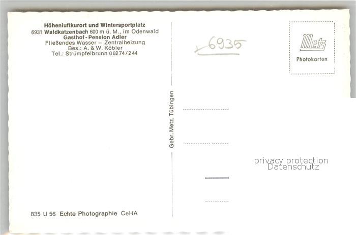 42930200 Waldkatzenbach Gasthof Pension Adler postalisch nicht gelaufen Erhaltung siehe scans [AndreD76] KatCode: 11110008225118