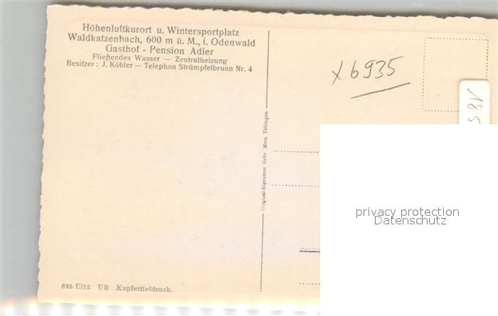 42930191 Waldkatzenbach Gasthof Pension Adler postalisch nicht gelaufen Erhaltung siehe scans [AndreD76] KatCode: 11110008225118