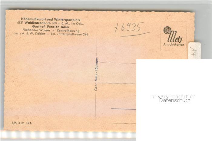 42930190 Waldkatzenbach Gasthof Pension Adler postalisch nicht gelaufen Erhaltung siehe scans [AndreD76] KatCode: 11110008225118