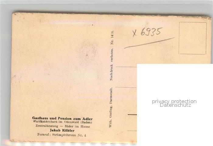 42932804 Waldkatzenbach Gasthof Pension Adler postalisch nicht gelaufen Erhaltung siehe scans [AndreD76] KatCode: 11110008225118