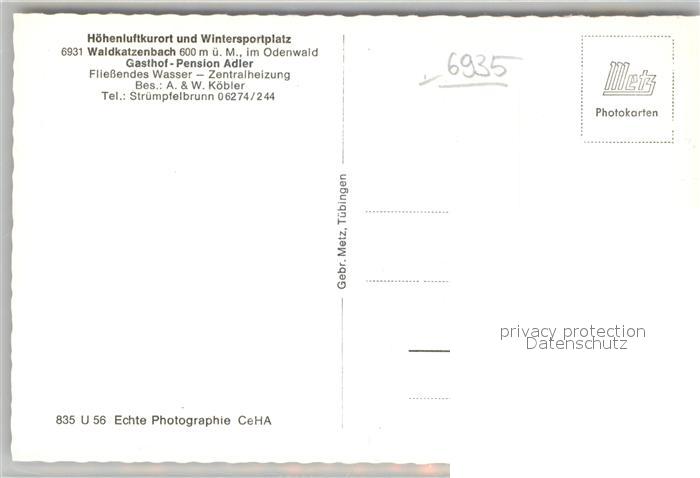 42931712 Waldkatzenbach Gasthof Pension Adler postalisch nicht gelaufen Erhaltung siehe scans [AndreD76] KatCode: 11110008225118