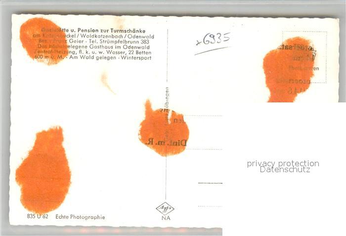 42931596 Waldkatzenbach Gaststaette Turmschaenke postalisch nicht gelaufen Erhaltung siehe scans [AndreD76] KatCode: 11110008225118