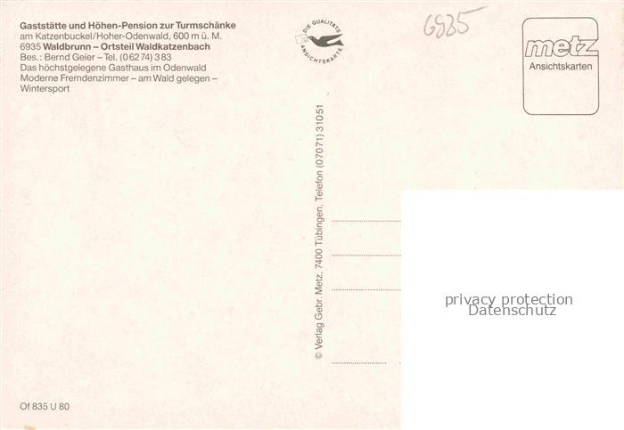 74047520 Waldkatzenbach Gaststaette und Hoehen Pension zur Turmschaenke postalisch nicht gelaufen Erhaltung siehe scans [WerneD78] KatCode: 11110008225118