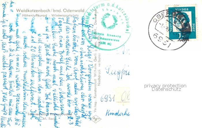 72769325 alte Postkarte Waldkatzenbach Gesamtansicht postalisch gelaufen Erhaltung siehe scans [AndreD76] KatCode: 11110008225118