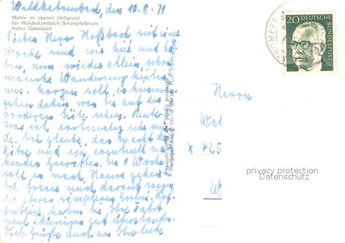 73618309 alte Postkarte Waldkatzenbach Muehle im oberen Hoellgrund Odenwald Fliegeraufnahme postalisch gelaufen Erhaltung siehe scans [FriedD77] KatCode: 11110008225118