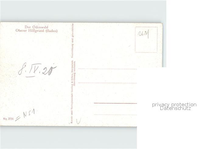 72921588 Waldkatzenbach Odenwald Oberer Hoellgrund postalisch nicht gelaufen Erhaltung siehe scans [NatalD47] KatCode: 11110008225118
