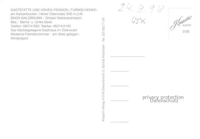 74047705 Waldkatzenbach Waldbrunn Gaststaette Turmschenke postalisch nicht gelaufen Erhaltung siehe scans [WerneD78] KatCode: 11110008225118