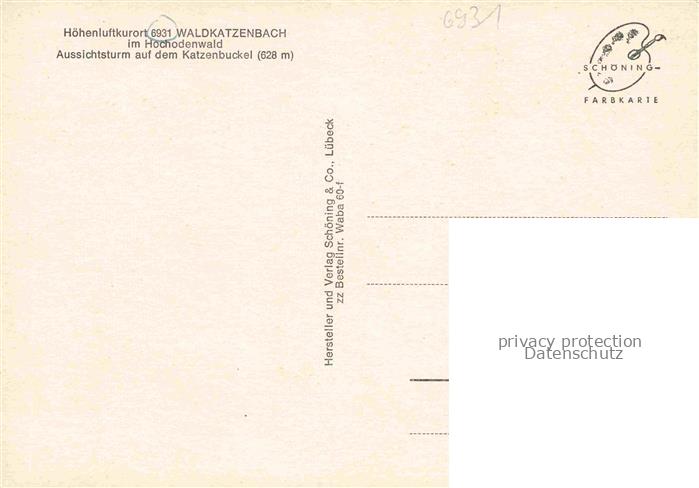 74047728 Waldkatzenbach Waldbrunn Katzenbuckelturm postalisch nicht gelaufen Erhaltung siehe scans [WerneD78] KatCode: 11110008225118