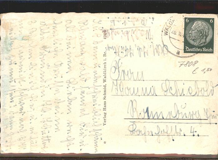 71444057 alte Postkarte Waldkirch Breisgau postalisch gelaufen Erhaltung siehe scans KatCode: 11110008316056