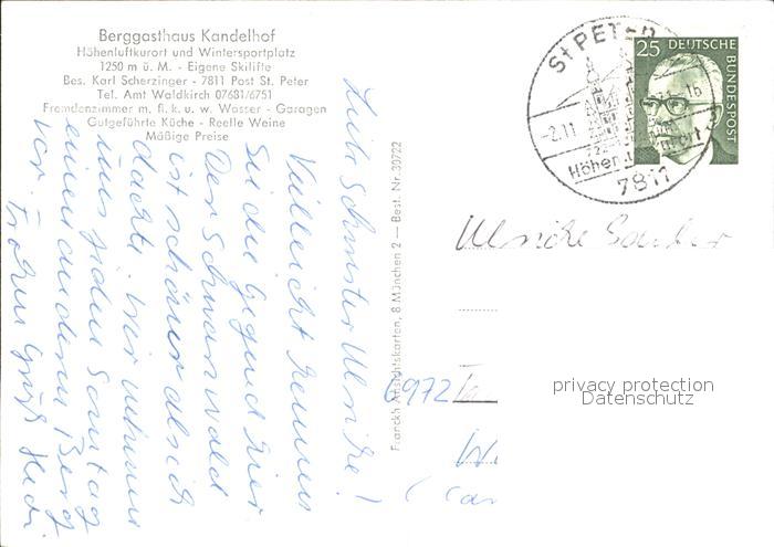 72069595 alte Postkarte Waldkirch Breisgau Berggasthaus Kandelhof Hoehenluftkurort Wintersportplatz Fliegeraufnahme postalisch gelaufen KatCode: 11110008316056