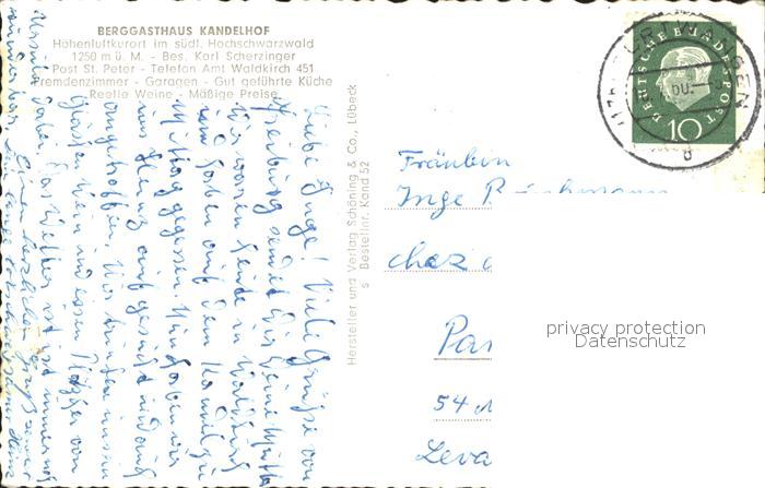 72295569 alte Postkarte Waldkirch Breisgau Berggasthaus Kandelhof Schwarzwald Simonswaeldertal St Maergen Schwarzwaldmaedle St Peter postalisch gelaufen Erhaltung siehe scans KatCode: 11110008316056