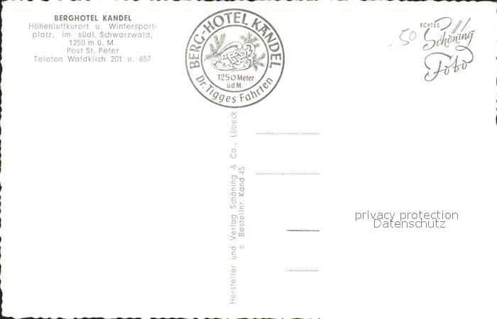 72202603 Waldkirch Breisgau Berghotel Kandel St. Peter postalisch nicht gelaufen Erhaltung siehe scans KatCode: 11110008316056