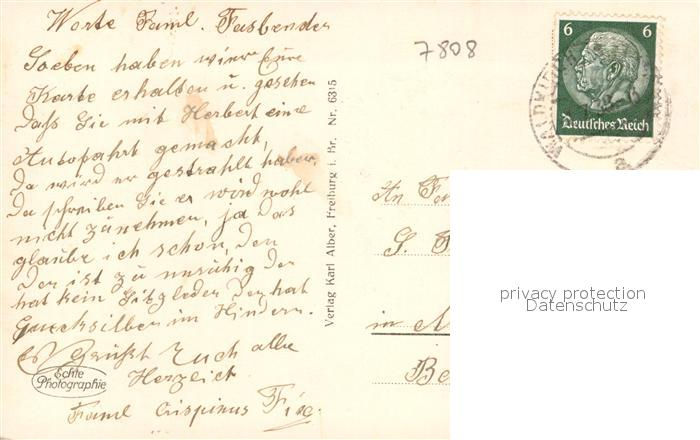 43287510 alte Postkarte Waldkirch Breisgau Blick vom Kriegerdenkmal postalisch gelaufen Erhaltung siehe scans [FriedD77] KatCode: 11110008316056
