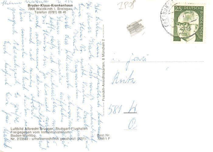 73887002 alte Postkarte Waldkirch Breisgau Bruder Klaus Krankenhaus Fliegeraufnahme postalisch gelaufen Erhaltung siehe scans [FriedD77] KatCode: 11110008316056