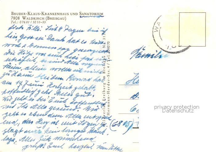 73070652 alte Postkarte Waldkirch Breisgau Bruder Klaus Krankenhaus und Sanatorium Fliegeraufnahme postalisch gelaufen Erhaltung siehe scans [FriedD77] KatCode: 11110008316056